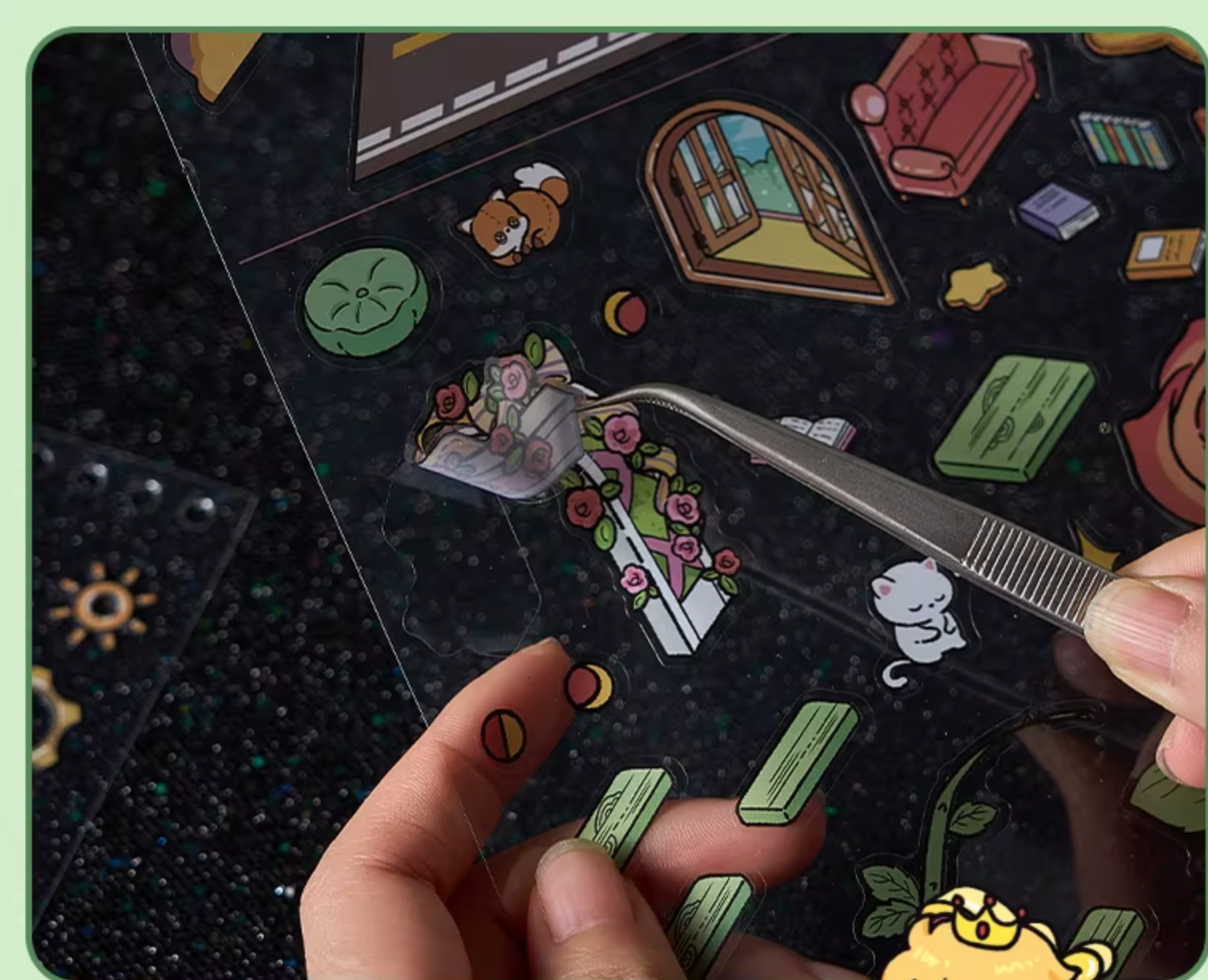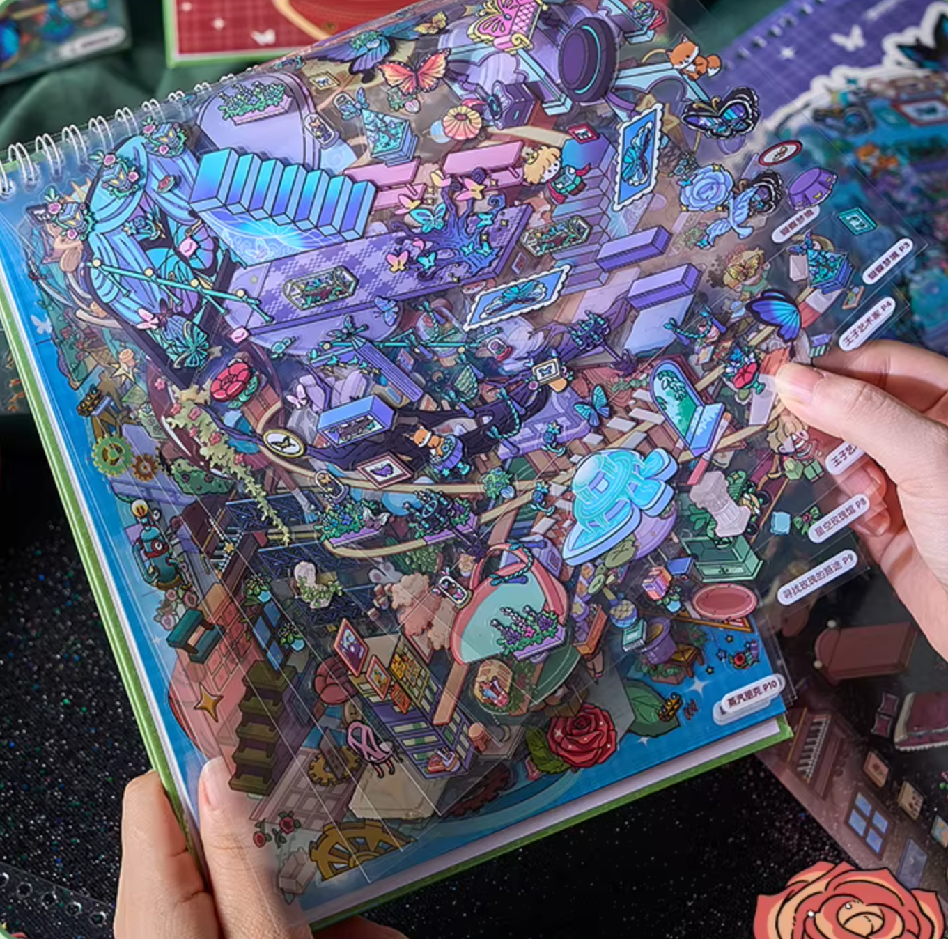 Diese Sticker-Scenes bestehen aus mehreren, aufeinander abgestimmten Stickerelementen, die Schicht für Schicht aufgeklebt werden. So entsteht eine dreidimensionale Szene mit Charakteren, Landschaften und liebevollen Details – ganz ohne Bastelwerkzeug oder Vorkenntnisse.